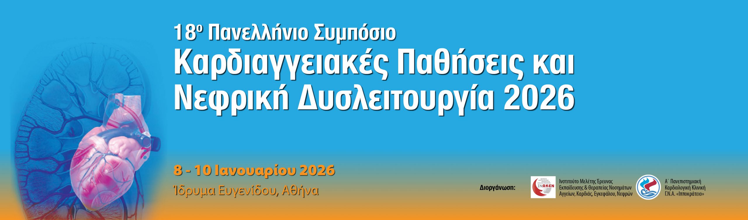 Με ιδιαίτερη χαρά θα θέλαμε να σας καλέσουμε στο 18ο Πανελλήνιο Συμπόσιο «Καρδιαγγειακές Παθήσεις και Νεφρική Δυσλειτουργία 2026», το οποίο ακολουθώντας μια πολυετή παράδοση, διεξάγεται και φέτος στο Ίδρυμα Ευγενίδου στην Αθήνα, από τις 8 έως τις 10 Ιανουαρίου 2026.